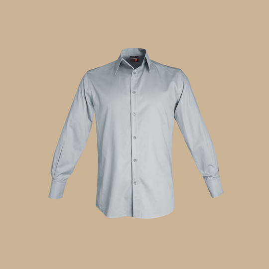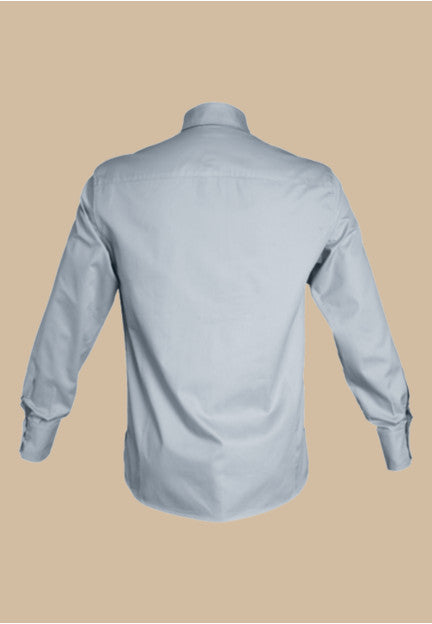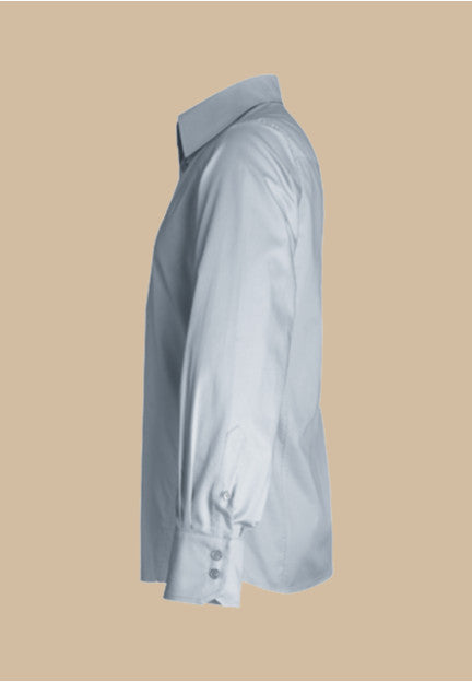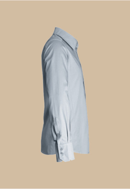 Fitted shirt, tab collar. Button-down front and buttoned cuffs. Side slits.