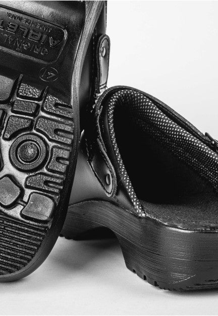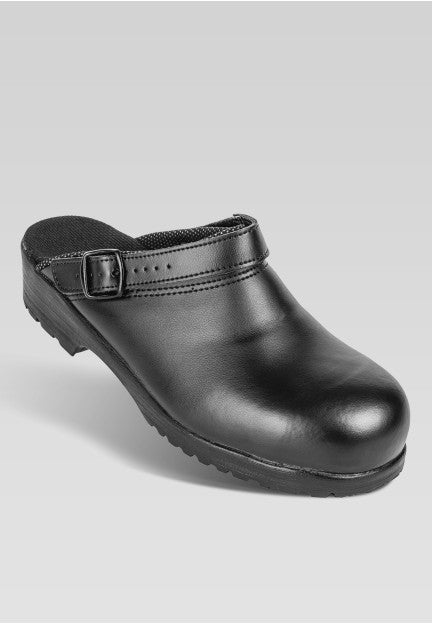 - Product: Safety clog with steel toe cap and elastic sling at the heel.
