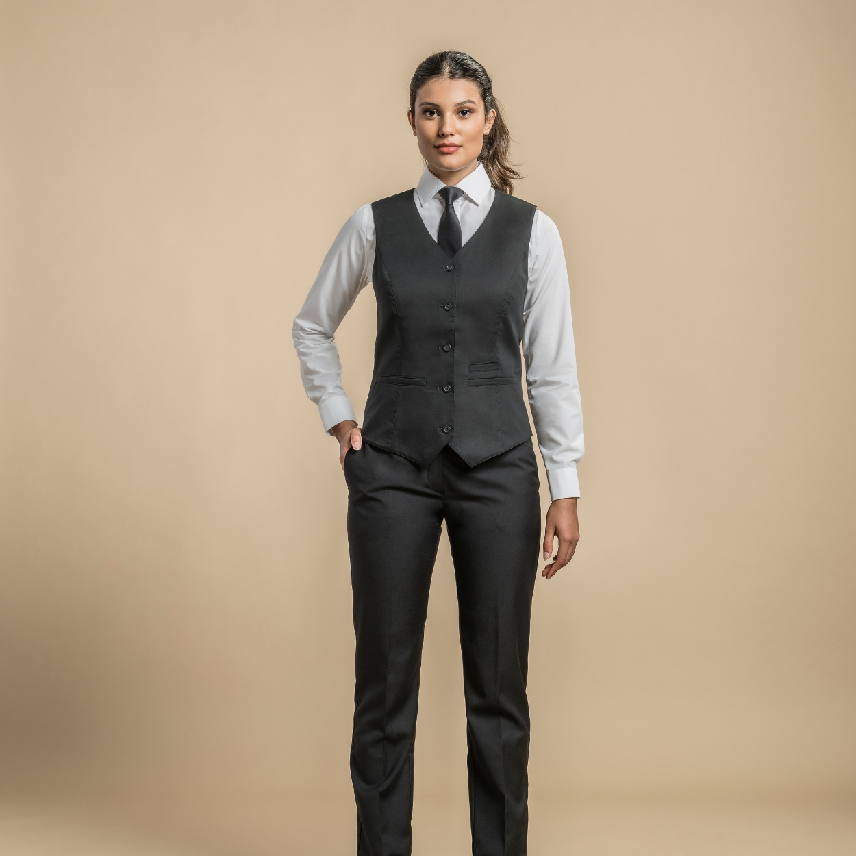 - Product: Fitted waistcoat with a V neck.