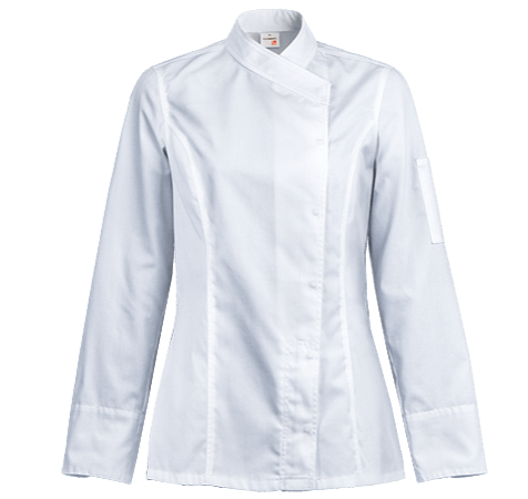 - Product: Women's chef jacket with kimono collar.